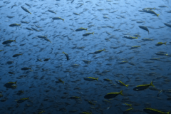 加えて、カツオやメジマグロ(クロマグロ幼魚)の群れがビュンビュンと駆け抜け、マダラトビエイやカマスサワラといった珍客も。