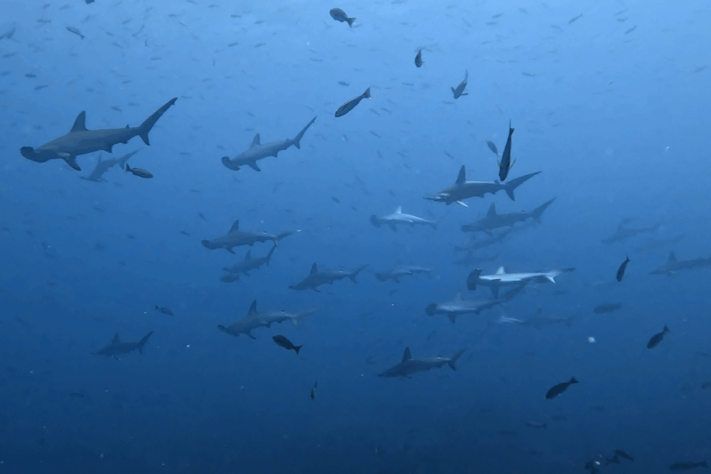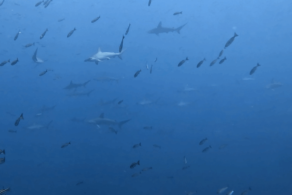 さらにメジロザメも多数確認され、安全停止中には足元をぐるぐる回遊する姿も!