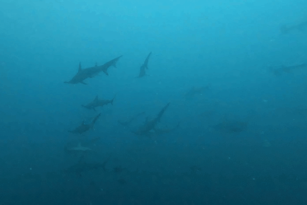 特に大きな個体が正面からダイバーに迫ってくるシーンは迫力満点でした。