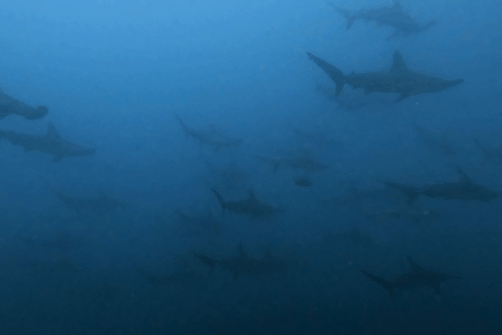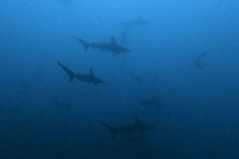 白濁の中でも、朝一番の潮が効いている時間帯にハンマーの群れが登場!