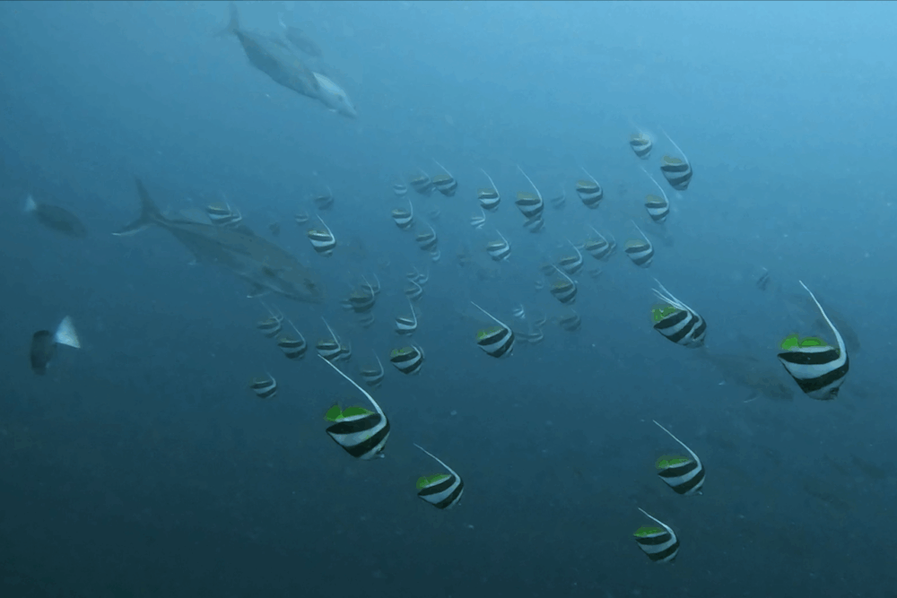 水中を埋め尽くす圧倒的な群れが広がりました。