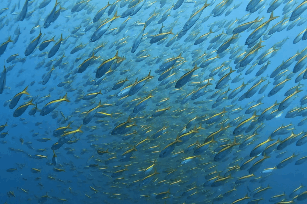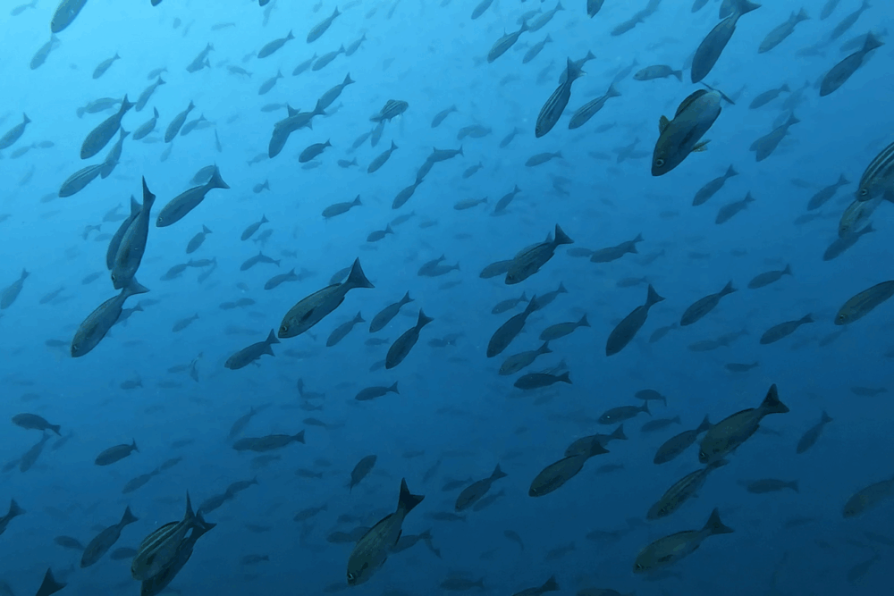 午後からの青い潮の影響で、昨日より群れ感はやや控えめ。