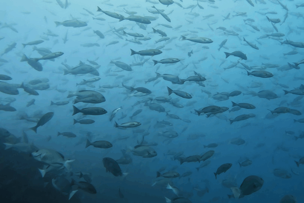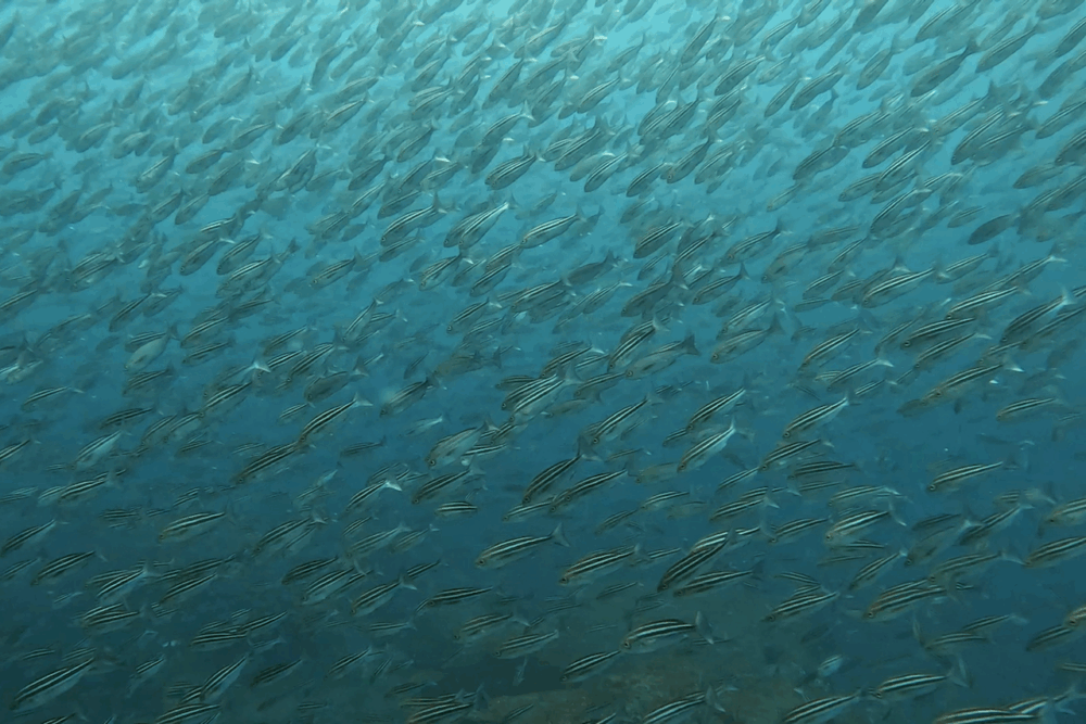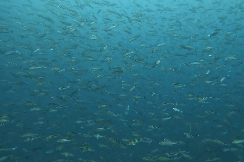 まるで魚の壁のようにダイバーを囲みました。