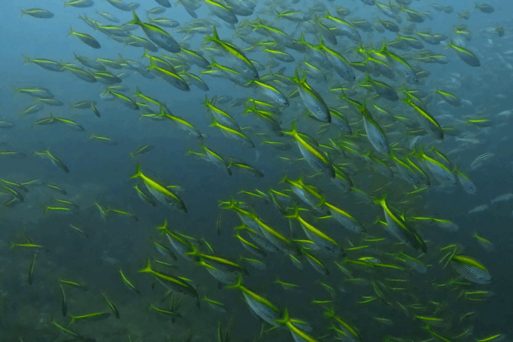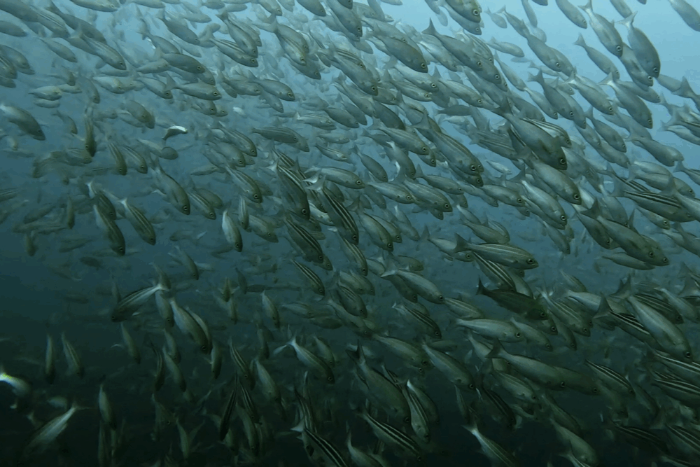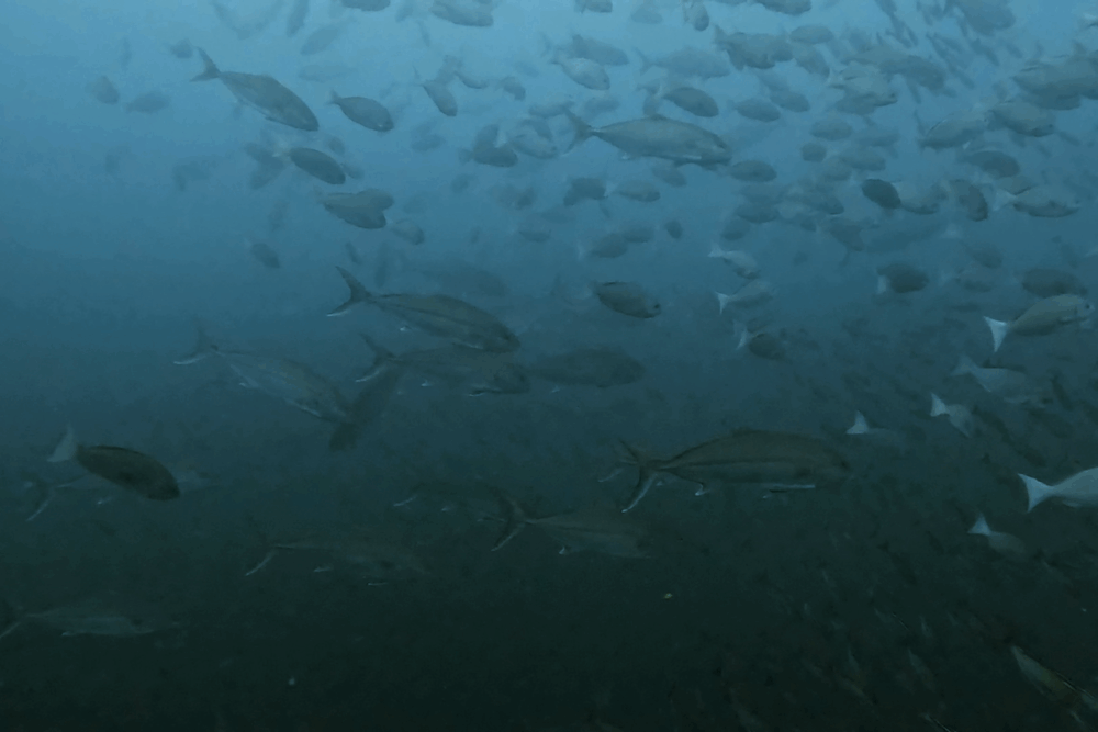 イサキは視界を埋め尽くすウォールとなり、群れ一色の光景。