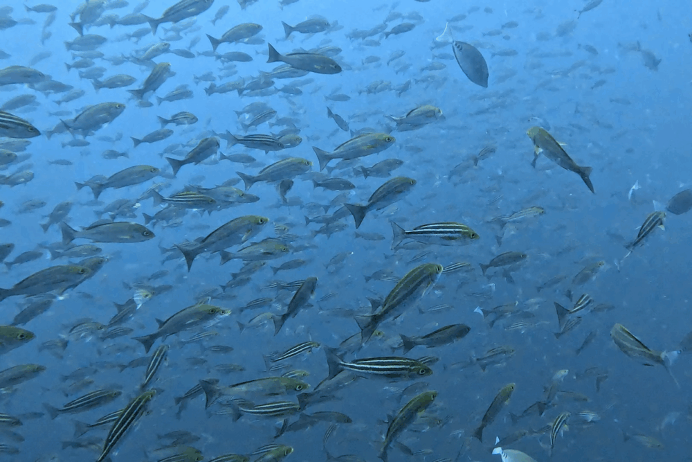 今日もイサキが圧巻で、濃密な“イサキウォール”が視界を覆う迫力。