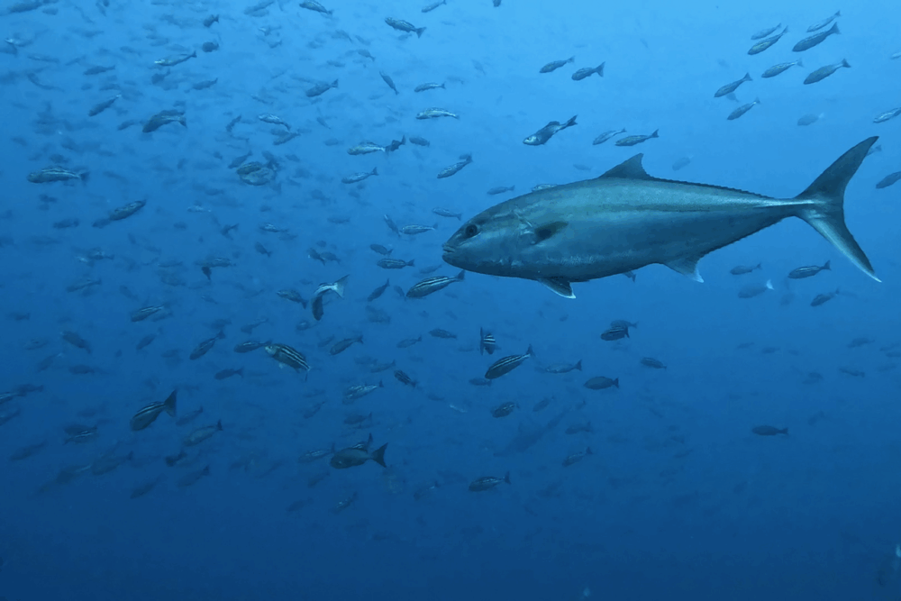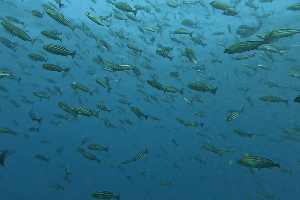 キハダマグロの群れやカツオの群れも出現し、活気に満ちた海中となりました。