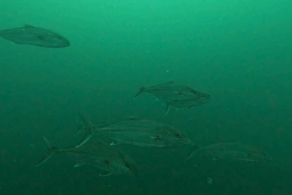 ただし20m以深には濁りが残り、場所によっては冷たい層の影響も受けました。