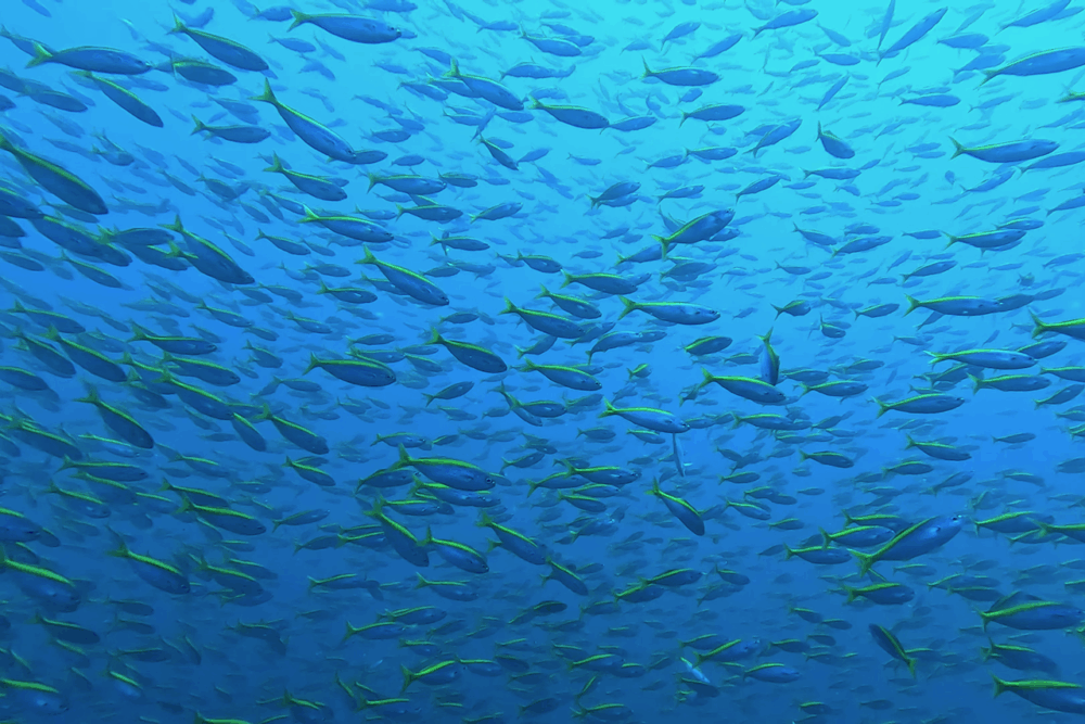 魚群は冷水の影響で昨日より控えめながら、迫力は十分。