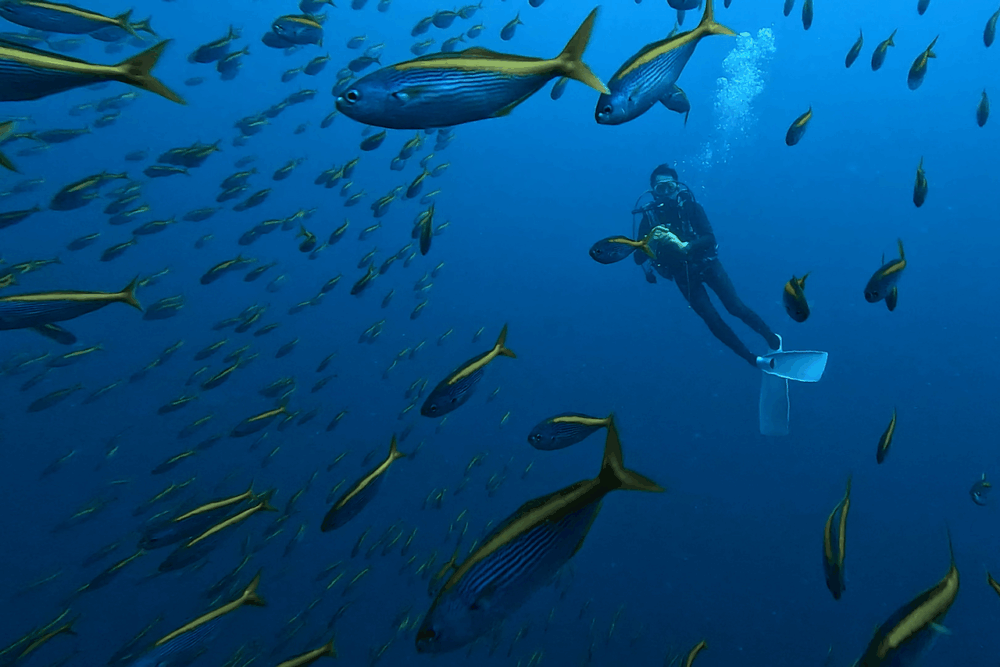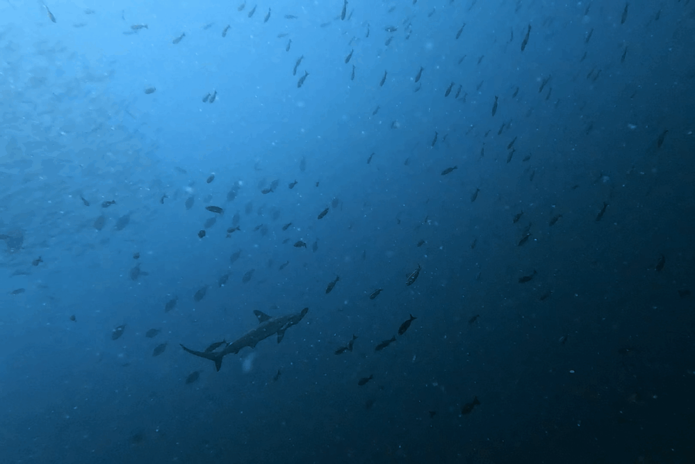 また、大型の個体がダイバーのすぐそばを悠々と通り過ぎるシーンも!
