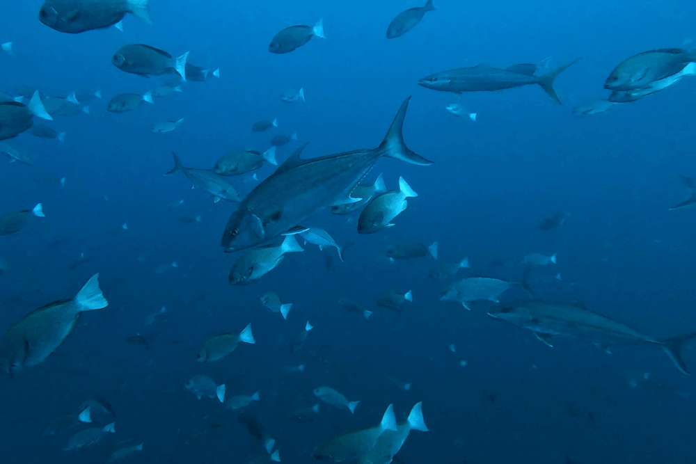 特に西側ではイサキとタカサゴが圧倒的な密度で群れを形成。