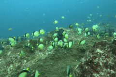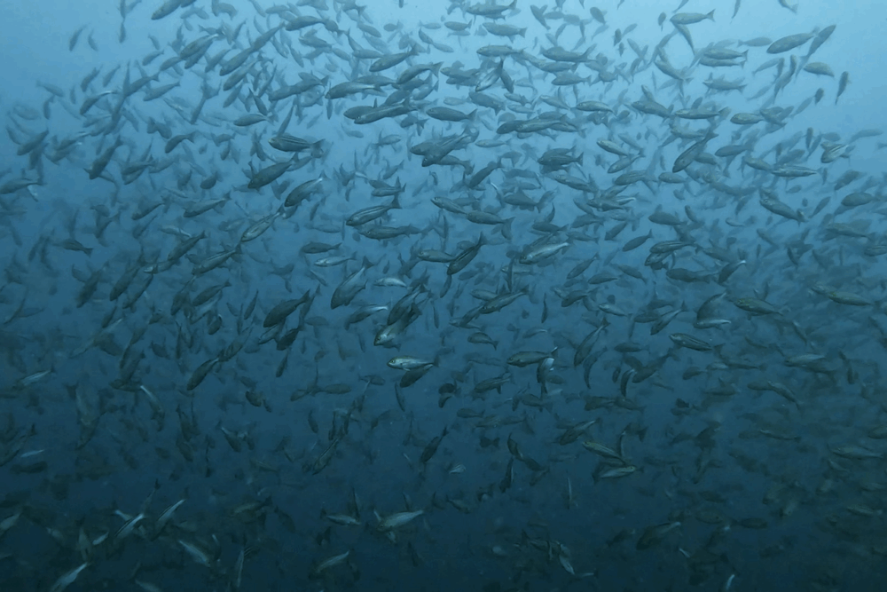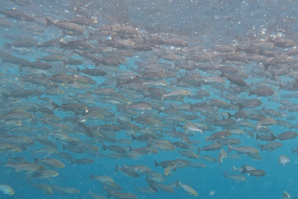 タカサゴ、メジナ、ニザダイ、ムロアジなど、多彩な群れに包まれました。