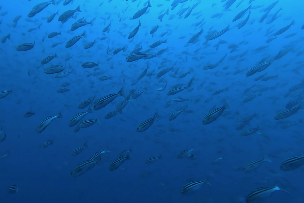イサキ、タカベ、ムロアジ、タカサゴなどが群れを成していました。