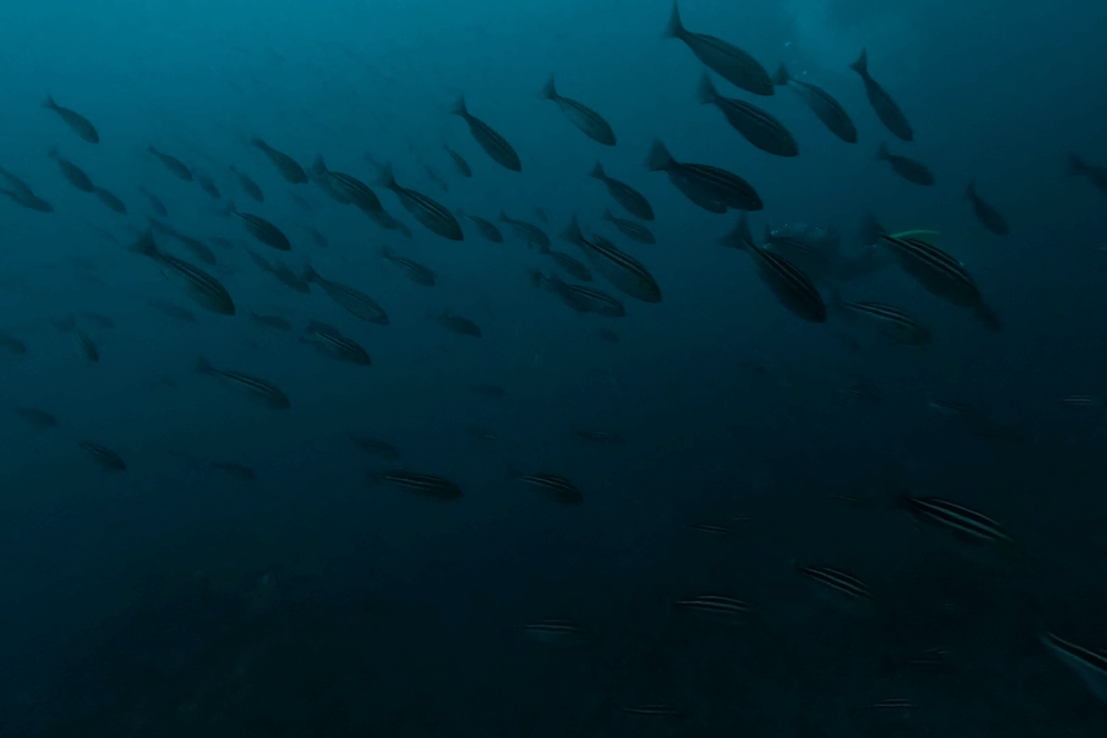水中は全体的に薄暗く、ナイトダイブのような雰囲気でした。