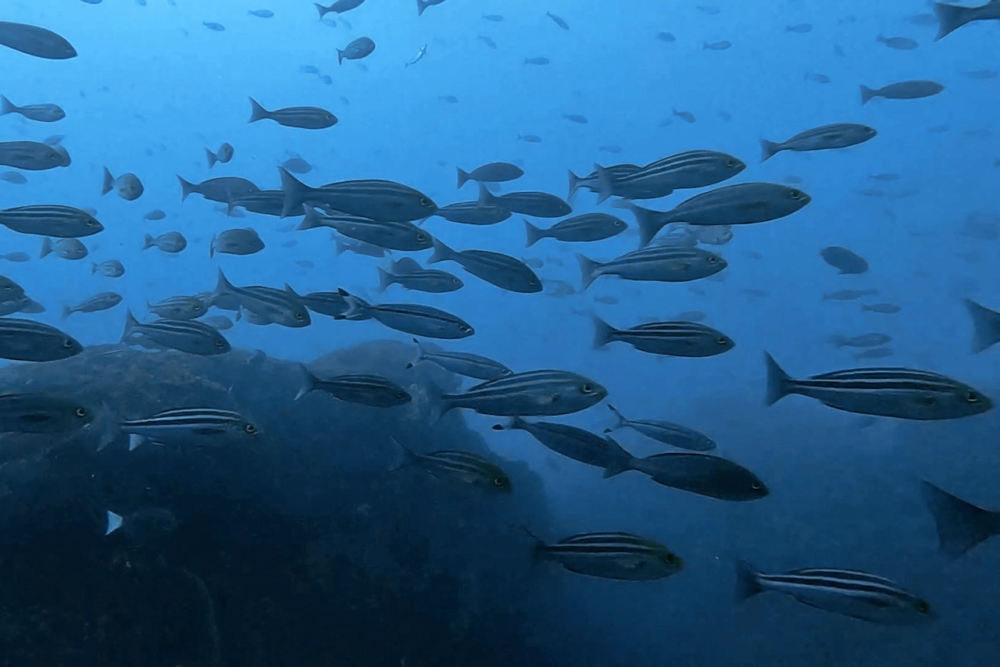 特にタカサゴの群れは圧巻で、滝のように流れていました。