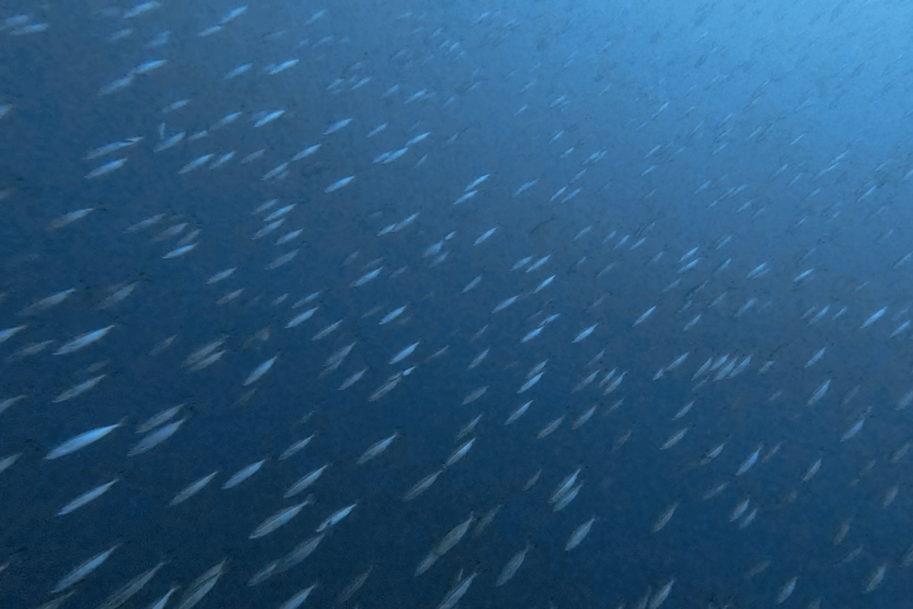 イサキ、タカベ、タカサゴは群れ群れ状態。
