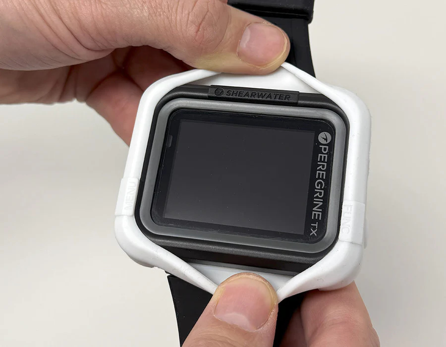 Peregrine 用 保護ケース(バンパー) 【対応:Peregrine / Peregrine TX】 プレミアムシリコン製。神子元の荒い波打ち際やボート上での接触から、大切な愛機を完璧にガードします。 カラー: ホワイト / ブラック / グレー 販売価格:¥6,600(税込) 装着イメージ: