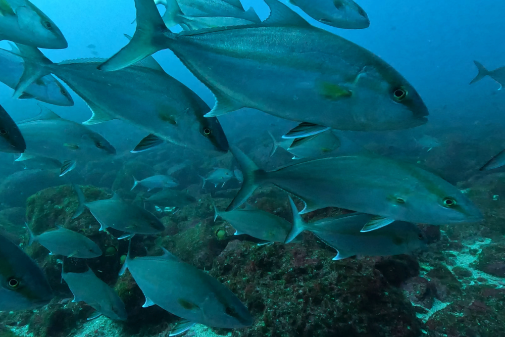 少し小ぶりながらもフレンドリーなカンパチ軍団も忘れなく!