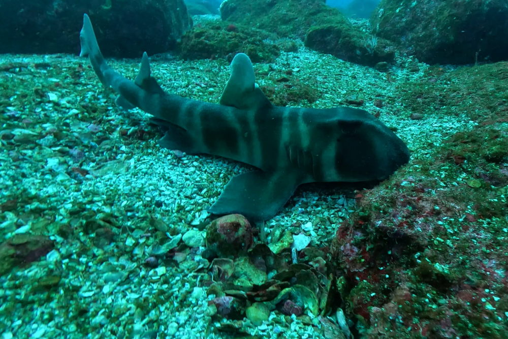 流れが強くなり始めると、カマストガリザメがポツポツ登場。