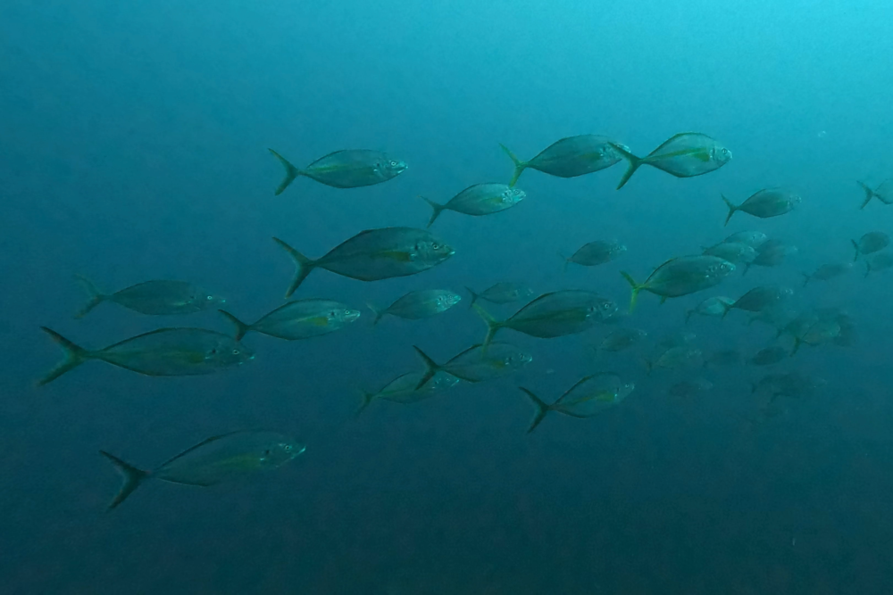 普段は水底付近を横長に群れることが多い魚ですが、