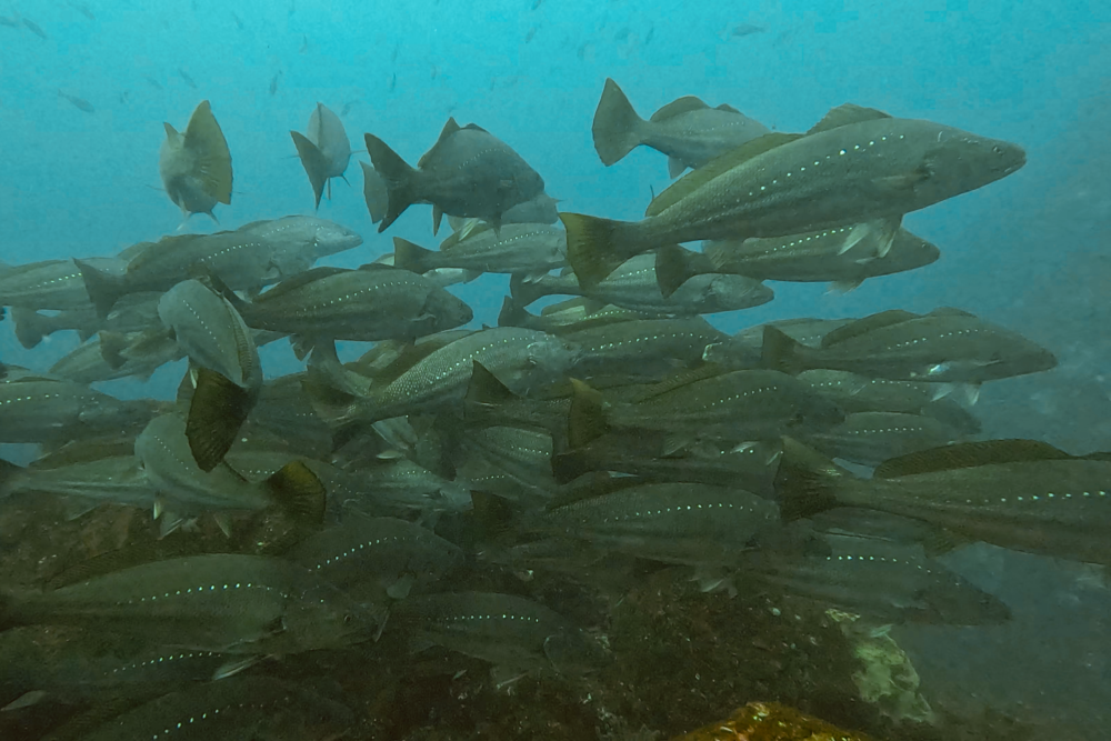 透視度はやや白濁し、浮遊物が目立つコンディションでした。