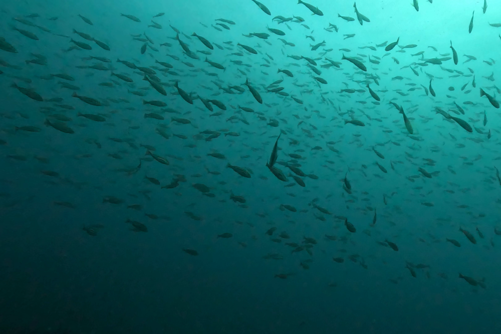 魚影は非常に濃く、イサキ、タカベ、メジナの群れが常に視界に入る状態。
